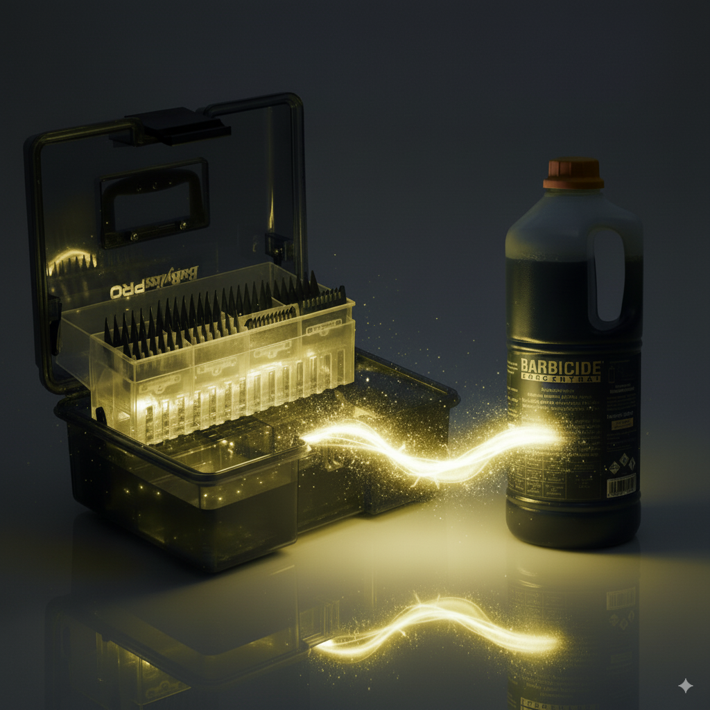 Otkriven u New Yorku i desetljećima usavršavanjima, Barbicide je postavio standard za dezinfekciju salona i brijačnica od svog nastanka 1947. godine. Svojom legendarnom plavom bojom i pouzdanom formulom postao je nepogrešiv simbol čistoće i njegove - toliko štovan da se staklenka čak nalazi u stalnoj kolekciji Smithsoniana.
